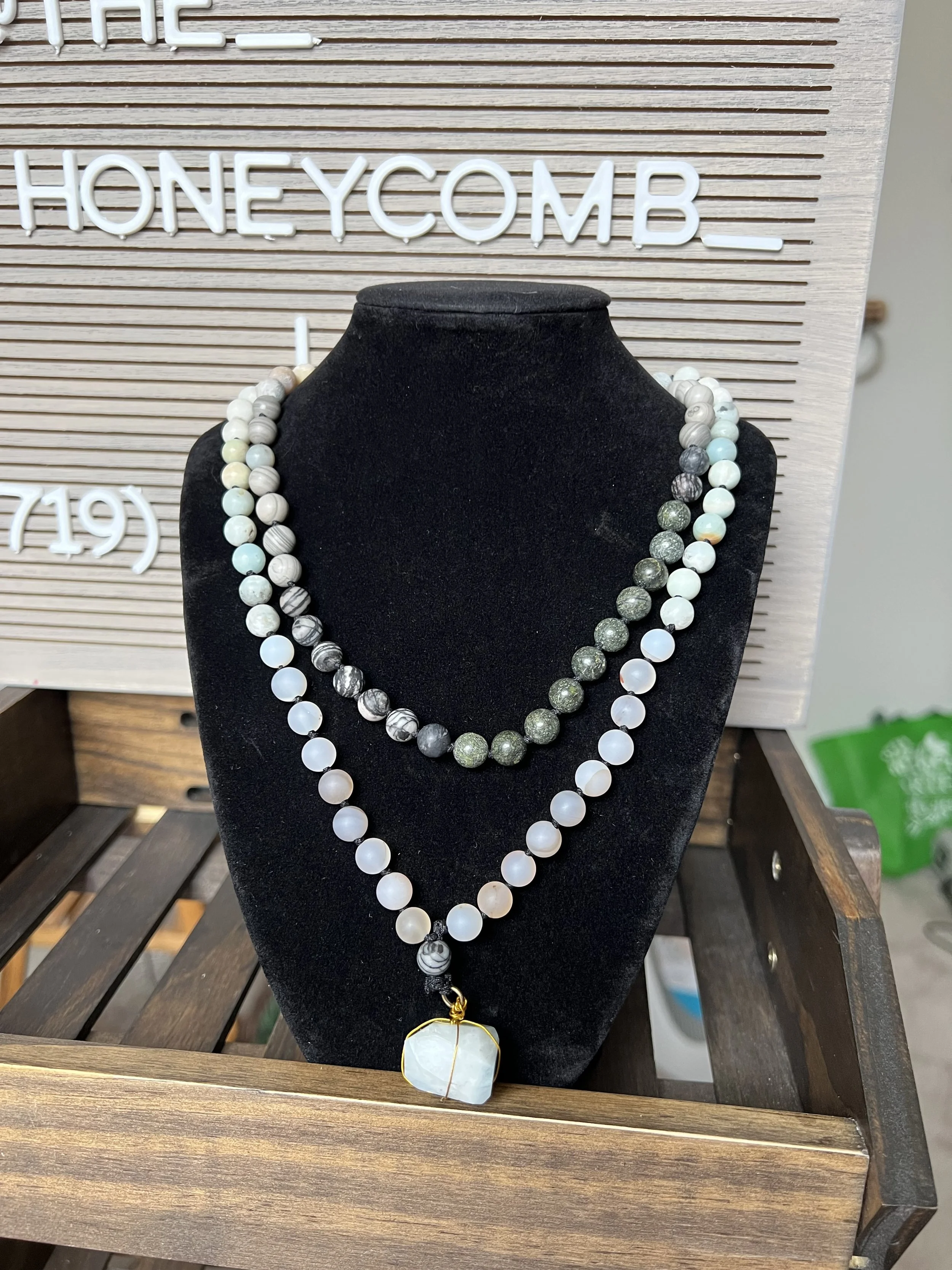 Handmade malas replenish when available or reach out to have one custom made! Most of the mala beads are from White Rabbit Beads in COS.